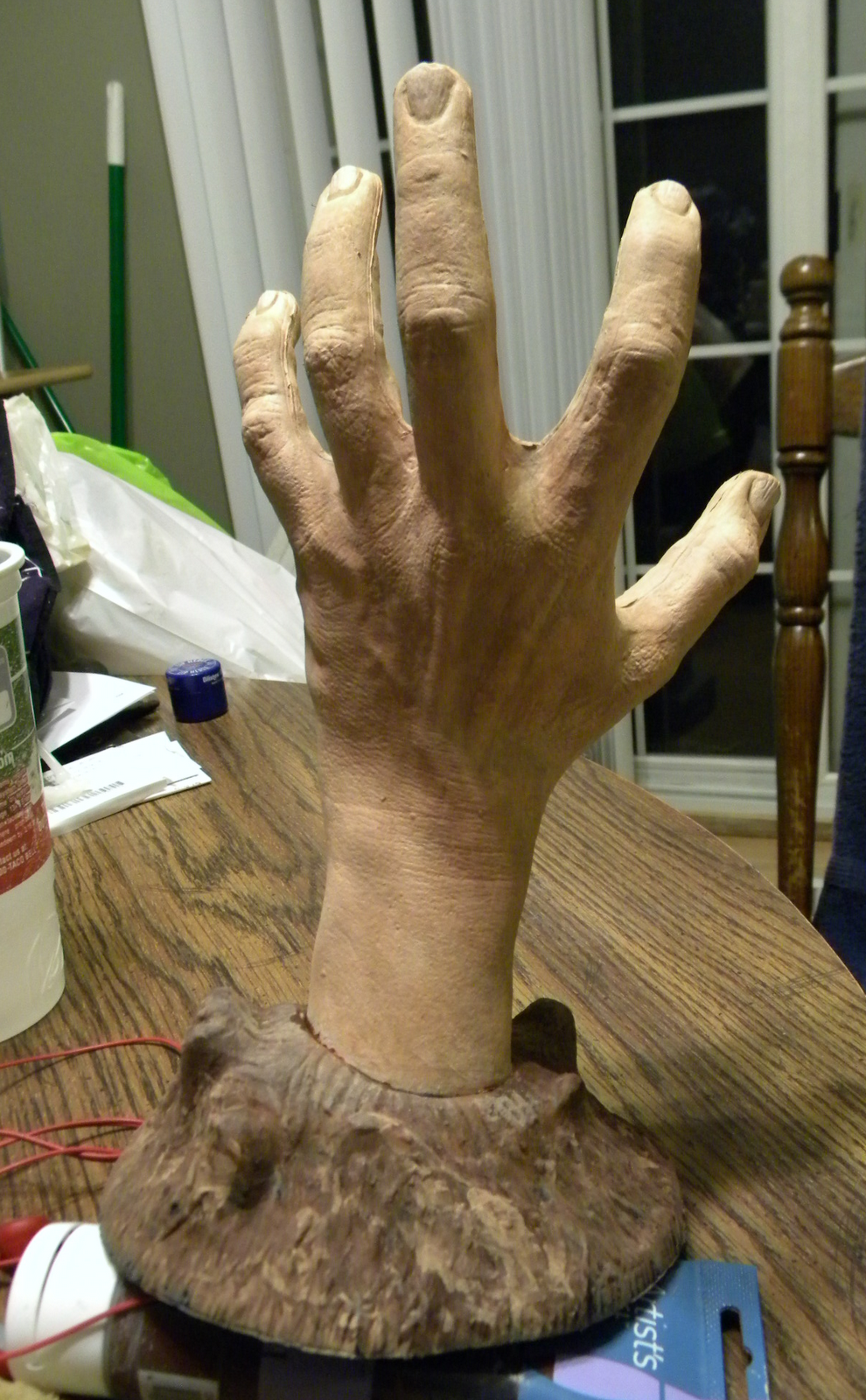 Now that's a zombie hand worthy of scaring the pants off some Trick-Or-Treaters and it was just $6 and about another $2 in craft paint supplies.