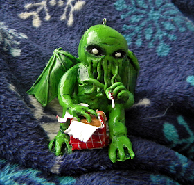 And Christmas has to begin prior to the final death of the hot lady. Thus today I bring you my first ever crafted all by myself ornament featuring Cthulhu himself.