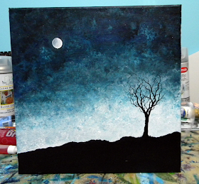 Oh I also made a painting yesterday, it was supposed to start out looking one way but I got mad waiting for paint to dry and the sky cracked a bit. This is why I should never have superpowers.